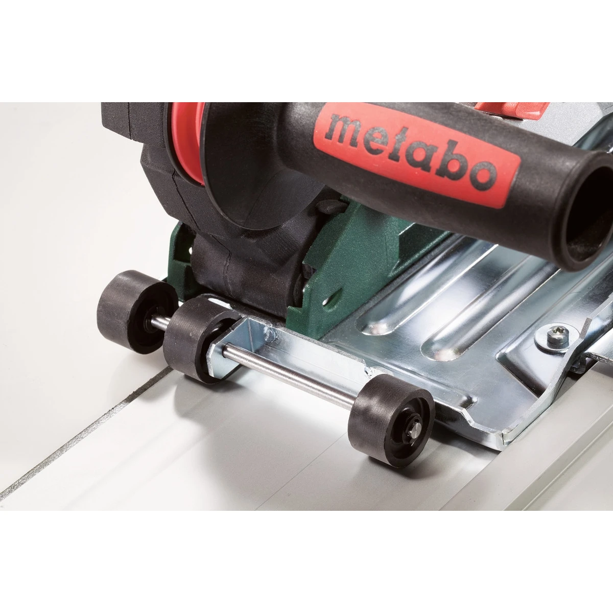 - Permet l’utilisation d’un rail de guidage Metabo pour des coupes extrêmement précises.