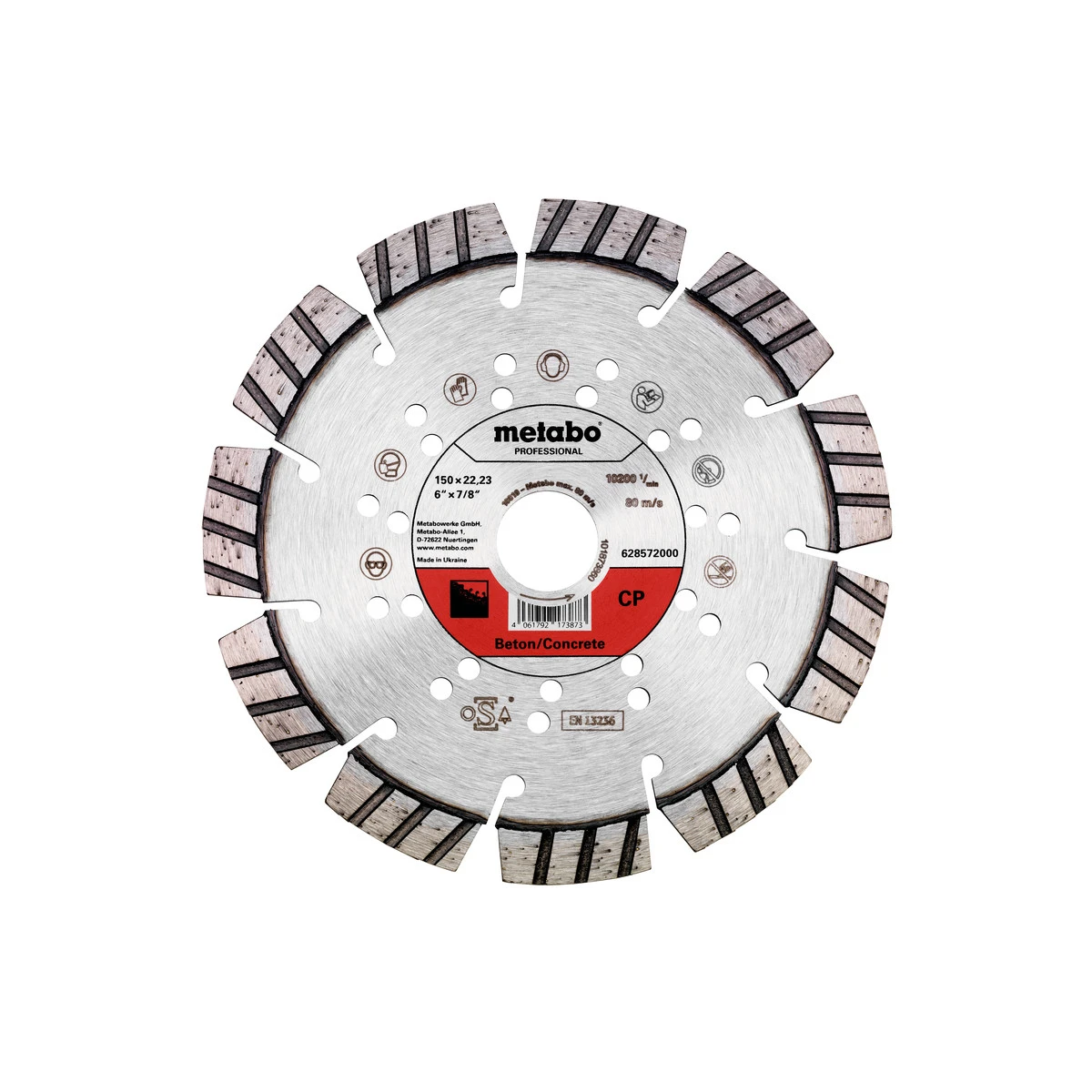 Metabo 628572000 Meule de tronçonnage diamantée 150 x 22.23 mm performante avec bord segmenté pour le tronçonnage agressif et rapide de matériaux durs avec une capacité de coupe très élevée et une très longue durée de vie.