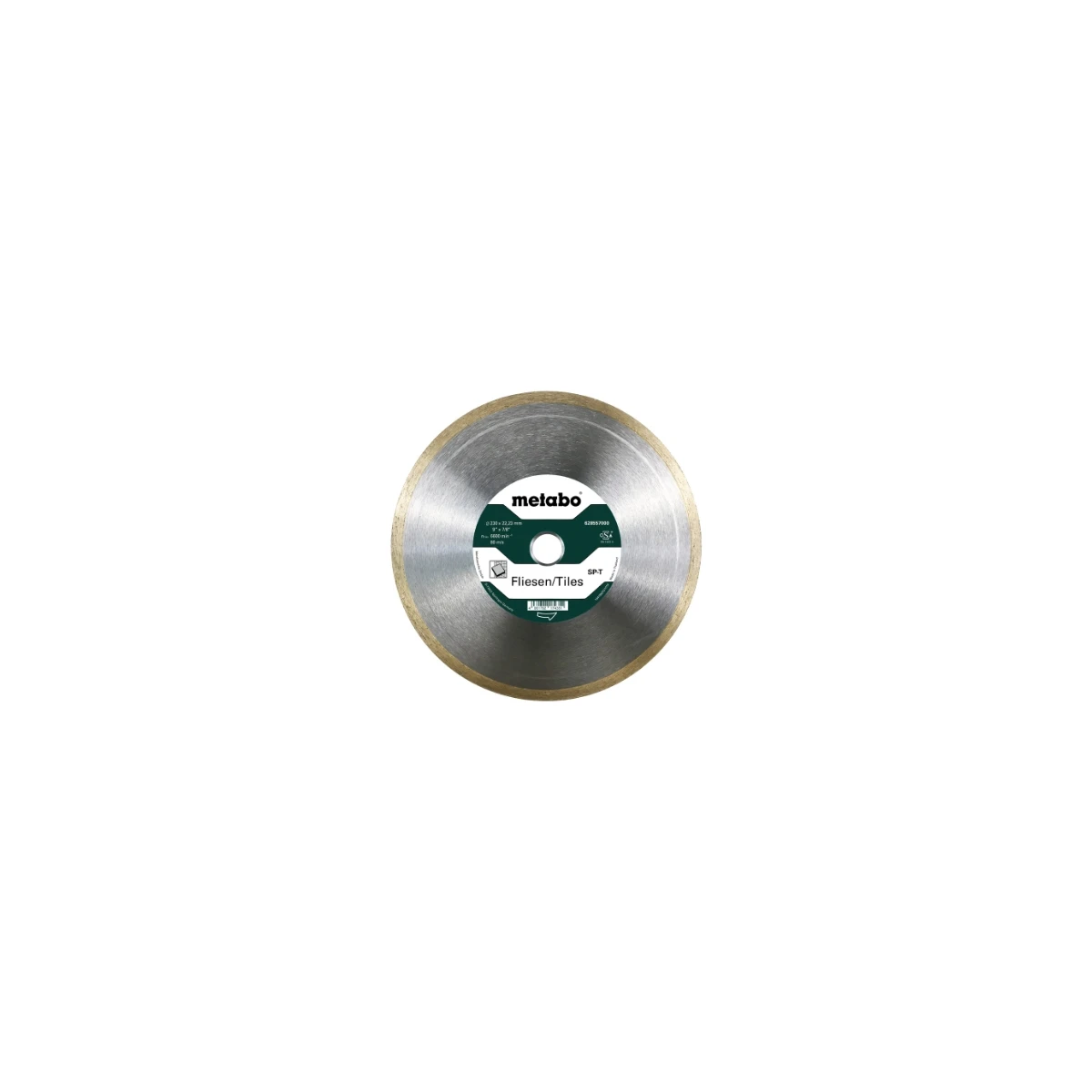 Metabo 628557000 Meule de tronçonnage diamantée standard avec bord fermé pour le tronçonnage sans éclats de pièces avec des surfaces de haute qualité comme le carrelage, les dalles en pierre naturelle.